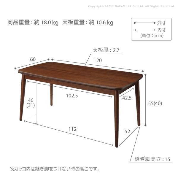 ソファに合わせて使える2WAYこたつ Snowmyスノーミー 120x60cm