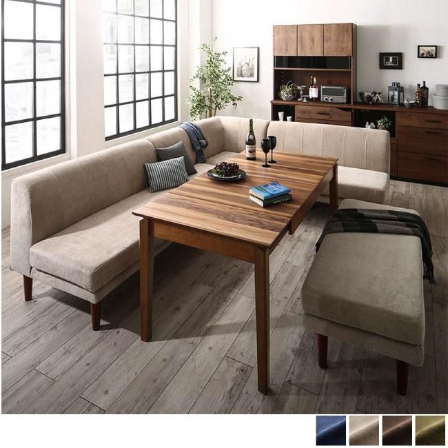 伸縮ダイニングテーブル&ソファセット(テーブル+2Pソファ2脚+1Pソファ1脚+コーナーソファ1脚+ベンチ1脚) W120-180|北欧ソファ・ベッド・ダイニングテーブル・チェア等の家具通販店|Sotao